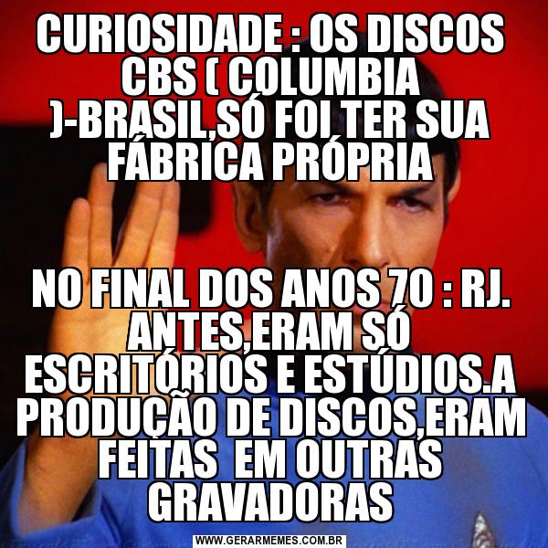 CURIOSIDADE : OS DISCOS CBS ( COLUMBIA )-BRASIL,SÓ FOI TER SUA FÁBRICA PRÓPRIA NO FINAL DOS ANOS 70 : RJ. ANTES,ERAM SÓ ESCRITÓRIOS E ESTÚDIOS.A PRODUÇÃO DE DISCOS,ERAM FEITAS EM OUTRAS GRAVADORAS