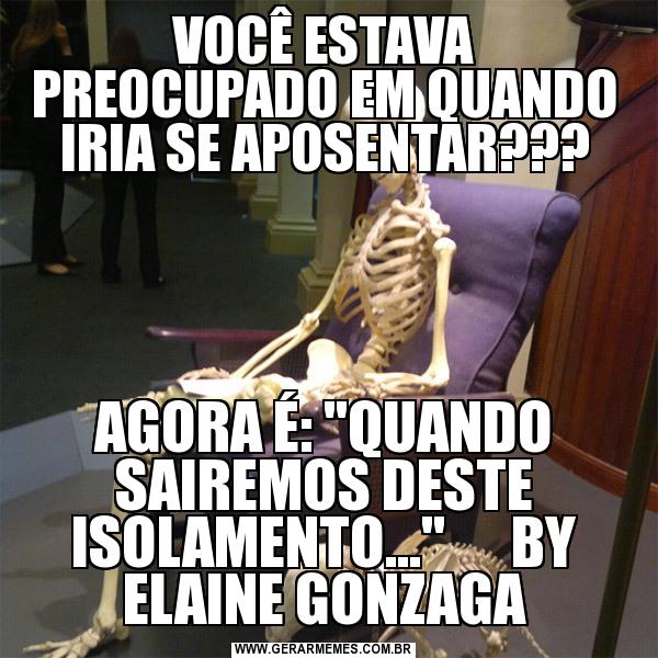 VOCÊ ESTAVA PREOCUPADO EM QUANDO IRIA SE APOSENTAR??? AGORA É: "QUANDO SAIREMOS DESTE ISOLAMENTO..." BY ELAINE GONZAGA