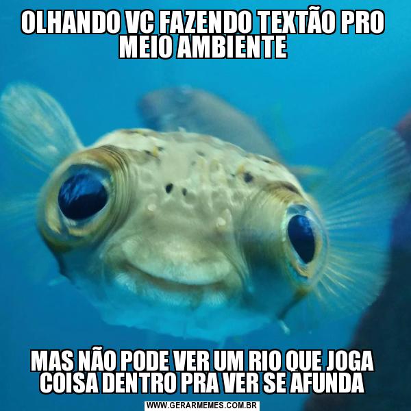 OLHANDO VC FAZENDO TEXTÃO PRO MEIO AMBIENTE MAS NÃO PODE VER UM RIO QUE JOGA COISA DENTRO PRA VER SE AFUNDA