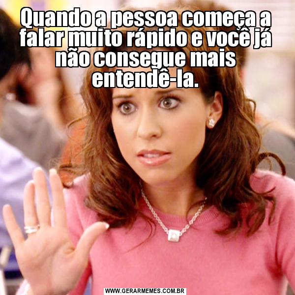 Quando a pessoa começa a falar muito rápido e você já não consegue mais entendê-la.