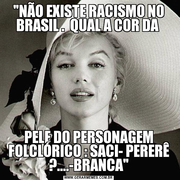 "NÃO EXISTE RACISMO NO BRASIL . QUAL A COR DA PELE DO PERSONAGEM FOLCLÓRICO : SACI- PERERÊ ?....-BRANCA"