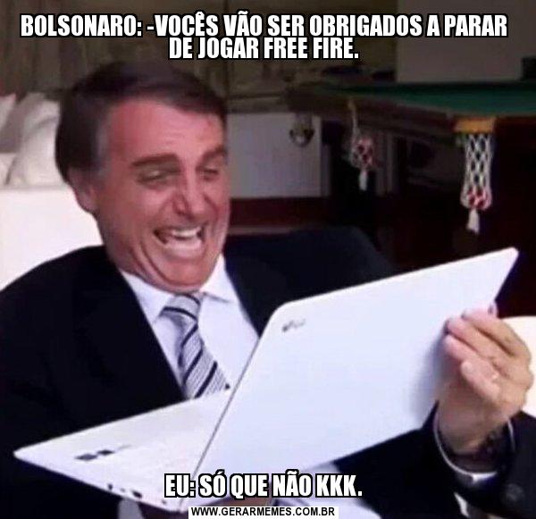 BOLSONARO: -VOCÊS VÃO SER OBRIGADOS A PARAR DE JOGAR FREE FIRE. EU: SÓ QUE NÃO KKK.