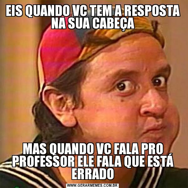 EIS QUANDO VC TEM A RESPOSTA NA SUA CABEÇA MAS QUANDO VC FALA PRO PROFESSOR ELE FALA QUE ESTÁ ERRADO