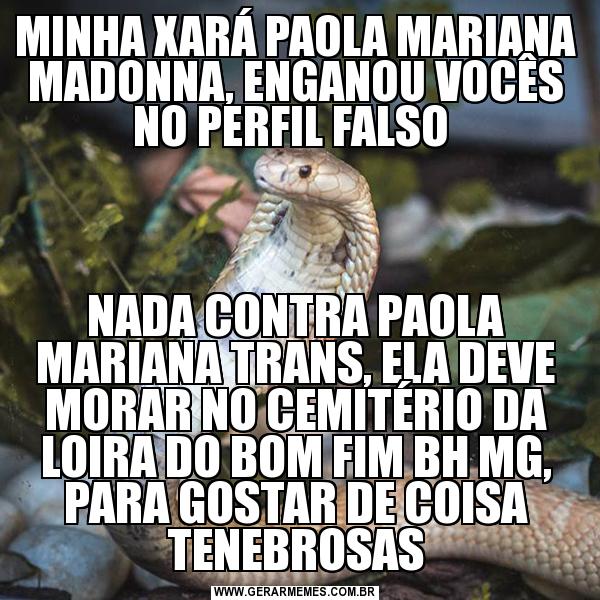MINHA XARÁ PAOLA MARIANA MADONNA, ENGANOU VOCÊS NO PERFIL FALSO NADA CONTRA PAOLA MARIANA TRANS, ELA DEVE MORAR NO CEMITÉRIO DA LOIRA DO BOM FIM BH MG, PARA GOSTAR DE COISA TENEBROSAS