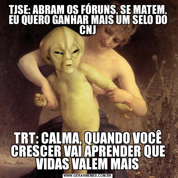 TJSE: ABRAM OS FÓRUNS, SE MATEM, EU QUERO GANHAR MAIS UM SELO DO CNJ TRT: CALMA, QUANDO VOCÊ CRESCER VAI APRENDER QUE VIDAS VALEM MAIS