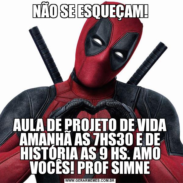 NÃO SE ESQUEÇAM! AULA DE PROJETO DE VIDA AMANHÃ AS 7HS30 E DE HISTÓRIA AS 9 HS. AMO VOCÊS! PROF SIMNE