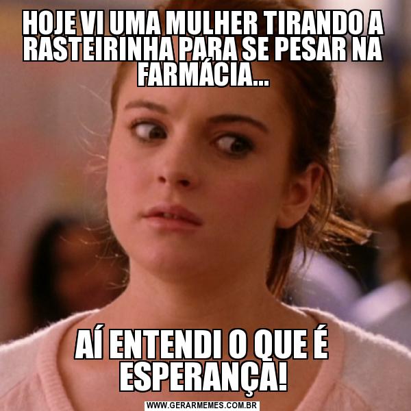 HOJE VI UMA MULHER TIRANDO A RASTEIRINHA PARA SE PESAR NA FARMÁCIA... AÍ ENTENDI O QUE É ESPERANÇA!