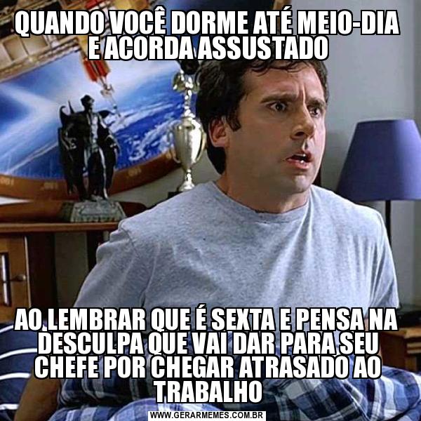 QUANDO VOCÊ DORME ATÉ MEIO-DIA E ACORDA ASSUSTADO AO LEMBRAR QUE É SEXTA E PENSA NA DESCULPA QUE VAI DAR PARA SEU CHEFE POR CHEGAR ATRASADO AO TRABALHO