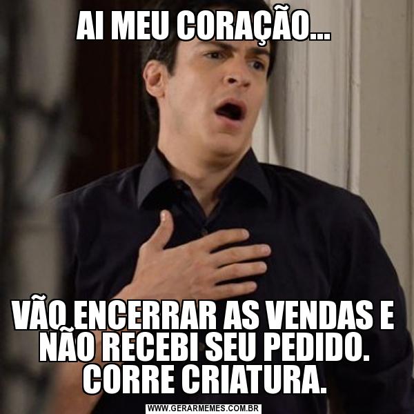 AI MEU CORAÇÃO... VÃO ENCERRAR AS VENDAS E NÃO RECEBI SEU PEDIDO. CORRE CRIATURA.