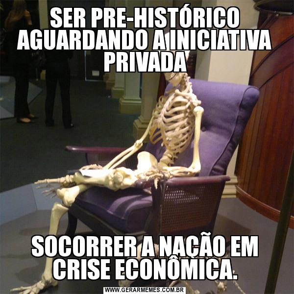 SER PRE-HISTÓRICO AGUARDANDO A INICIATIVA PRIVADA SOCORRER A NAÇÃO EM CRISE ECONÔMICA.