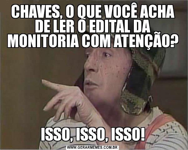 CHAVES, O QUE VOCÊ ACHA DE LER O EDITAL DA MONITORIA COM ATENÇÃO? ISSO, ISSO, ISSO!
