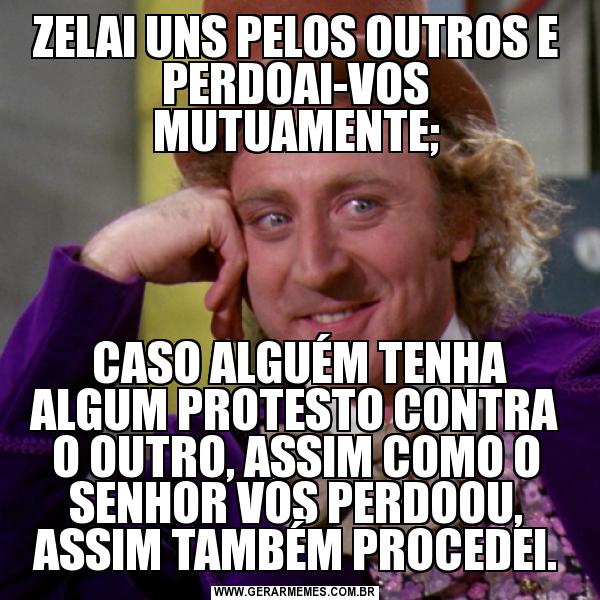 ZELAI UNS PELOS OUTROS E PERDOAI-VOS MUTUAMENTE; CASO ALGUÉM TENHA ALGUM PROTESTO CONTRA O OUTRO, ASSIM COMO O SENHOR VOS PERDOOU, ASSIM TAMBÉM PROCEDEI.