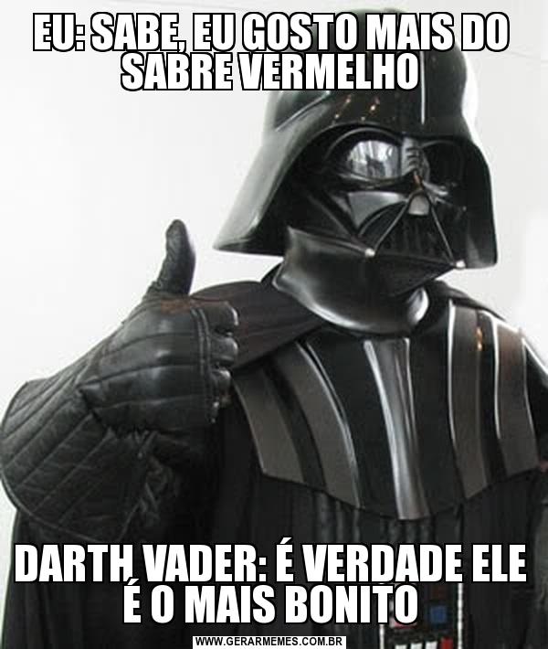 EU: SABE, EU GOSTO MAIS DO SABRE VERMELHO DARTH VADER: É VERDADE ELE É O MAIS BONITO