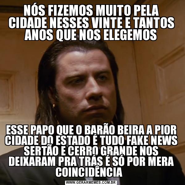 NÓS FIZEMOS MUITO PELA CIDADE NESSES VINTE E TANTOS ANOS QUE NOS ELEGEMOS ESSE PAPO QUE O BARÃO BEIRA A PIOR CIDADE DO ESTADO É TUDO FAKE NEWS SERTÃO E CERRO GRANDE NOS DEIXARAM PRA TRÁS É SÓ POR MERA COINCIDÊNCIA