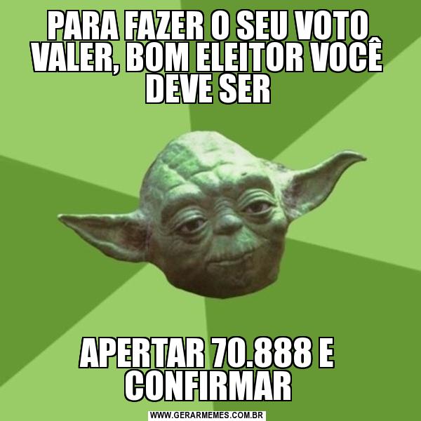 PARA FAZER O SEU VOTO VALER, BOM ELEITOR VOCÊ DEVE SER APERTAR 70.888 E CONFIRMAR