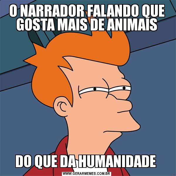 O NARRADOR FALANDO QUE GOSTA MAIS DE ANIMAIS DO QUE DA HUMANIDADE