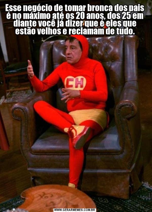 Esse negócio de tomar bronca dos pais é no máximo até os 20 anos, dos 25 em diante você já dizer que é eles que estão velhos e reclamam de tudo.