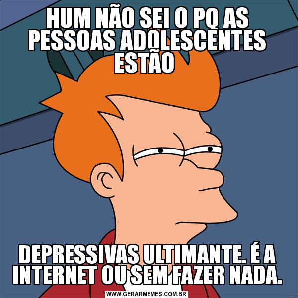HUM NÃO SEI O PQ AS PESSOAS ADOLESCENTES ESTÃO DEPRESSIVAS ULTIMANTE. É A INTERNET OU SEM FAZER NADA.