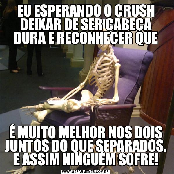 EU ESPERANDO O CRUSH DEIXAR DE SER CABEÇA DURA E RECONHECER QUE É MUITO MELHOR NOS DOIS JUNTOS DO QUE SEPARADOS. E ASSIM NINGUÉM SOFRE!