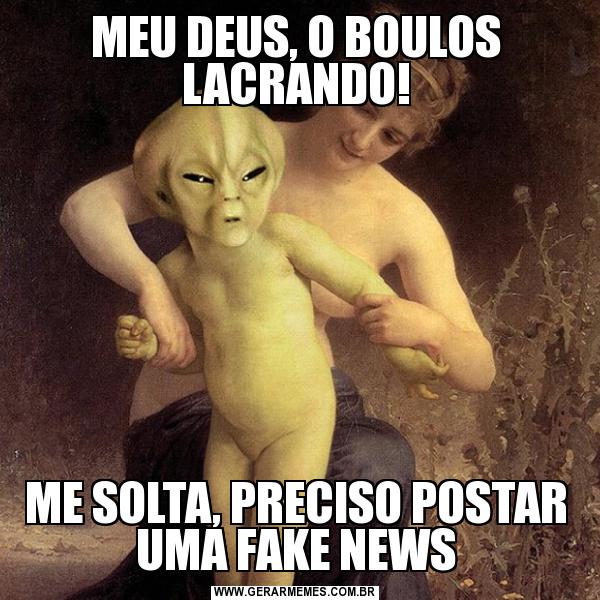 MEU DEUS, O BOULOS LACRANDO! ME SOLTA, PRECISO POSTAR UMA FAKE NEWS