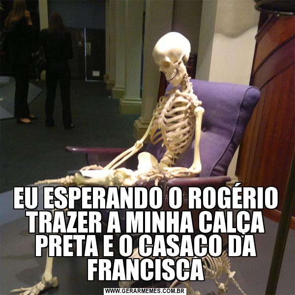 EU ESPERANDO O ROGÉRIO TRAZER A MINHA CALÇA PRETA E O CASACO DA FRANCISCA