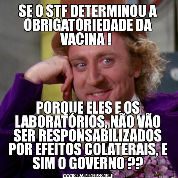 SE O STF DETERMINOU A OBRIGATORIEDADE DA VACINA ! PORQUE ELES E OS LABORATÓRIOS, NÃO VÃO SER RESPONSABILIZADOS POR EFEITOS COLATERAIS, E SIM O GOVERNO ??