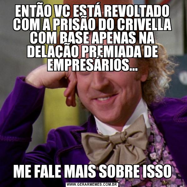 ENTÃO VC ESTÁ REVOLTADO COM A PRISÃO DO CRIVELLA COM BASE APENAS NA DELAÇÃO PREMIADA DE EMPRESÁRIOS... ME FALE MAIS SOBRE ISSO