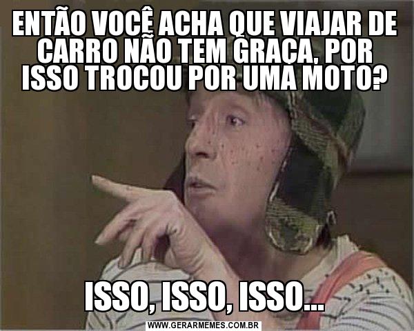 ENTÃO VOCÊ ACHA QUE VIAJAR DE CARRO NÃO TEM GRAÇA, POR ISSO TROCOU POR UMA MOTO? ISSO, ISSO, ISSO...
