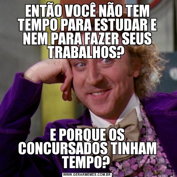 ENTÃO VOCÊ NÃO TEM TEMPO PARA ESTUDAR E NEM PARA FAZER SEUS TRABALHOS? E PORQUE OS CONCURSADOS TINHAM TEMPO?