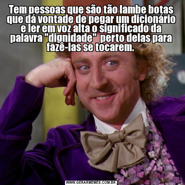 Tem pessoas que são tão lambe botas que dá vontade de pegar um dicionário e ler em voz alta o significado da palavra "dignidade" perto delas para fazê-las se tocarem.