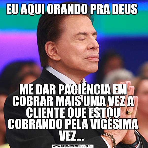 EU AQUI ORANDO PRA DEUS ME DAR PACIÊNCIA EM COBRAR MAIS UMA VEZ A CLIENTE QUE ESTOU COBRANDO PELA VIGÉSIMA VEZ...