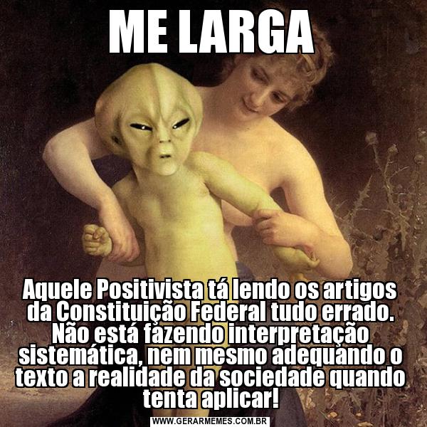 ME LARGA Aquele Positivista tá lendo os artigos da Constituição Federal tudo errado. Não está fazendo interpretação sistemática, nem mesmo adequando o texto a realidade da sociedade quando tenta aplicar!