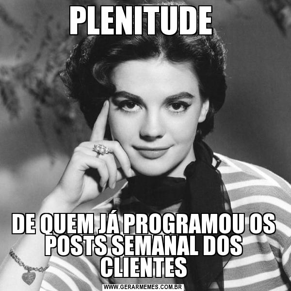 PLENITUDE DE QUEM JÁ PROGRAMOU OS POSTS SEMANAL DOS CLIENTES