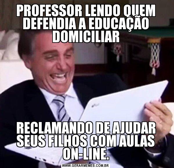 PROFESSOR LENDO QUEM DEFENDIA A EDUCAÇÃO DOMICILIAR RECLAMANDO DE AJUDAR SEUS FILHOS COM AULAS ON-LINE.