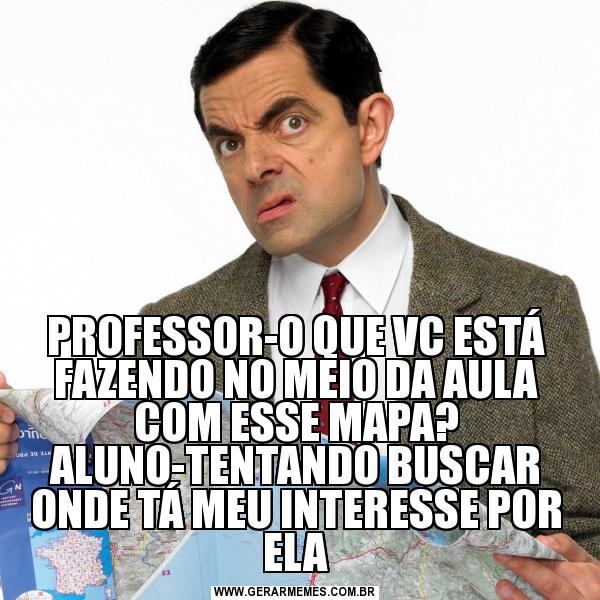 PROFESSOR-O QUE VC ESTÁ FAZENDO NO MEIO DA AULA COM ESSE MAPA? ALUNO-TENTANDO BUSCAR ONDE TÁ MEU INTERESSE POR ELA