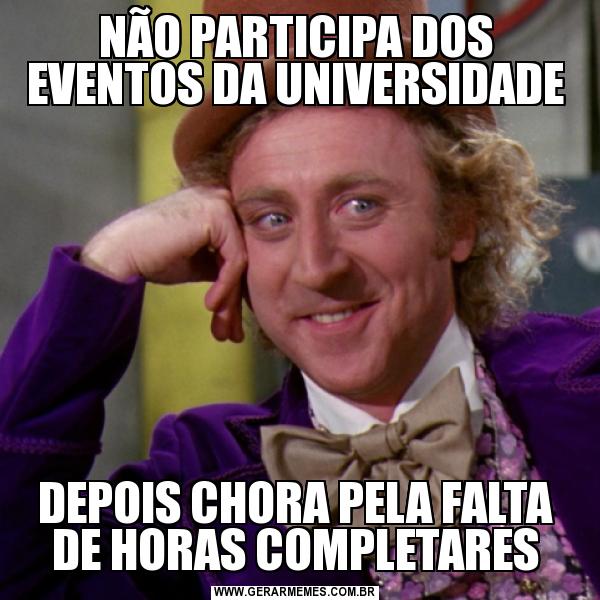 NÃO PARTICIPA DOS EVENTOS DA UNIVERSIDADE DEPOIS CHORA PELA FALTA DE HORAS COMPLETARES