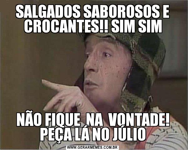 SALGADOS SABOROSOS E CROCANTES!! SIM SIM NÃO FIQUE NA VONTADE! PEÇA LÁ NO JÚLIO