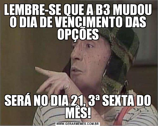 LEMBRE-SE QUE A B3 MUDOU O DIA DE VENCIMENTO DAS OPÇÕES SERÁ NO DIA 21, 3ª SEXTA DO MÊS!