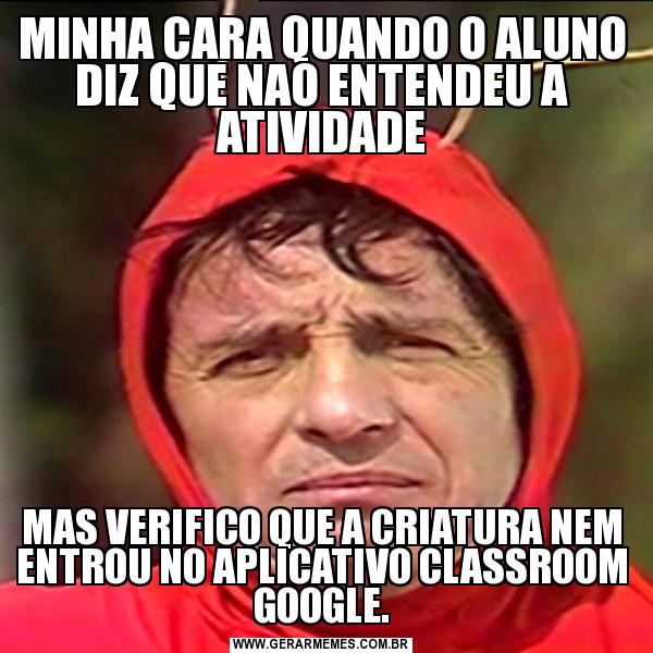 MINHA CARA QUANDO O ALUNO DIZ QUE NAO ENTENDEU A ATIVIDADE MAS VERIFICO QUE A CRIATURA NEM ENTROU NO APLICATIVO CLASSROOM GOOGLE.
