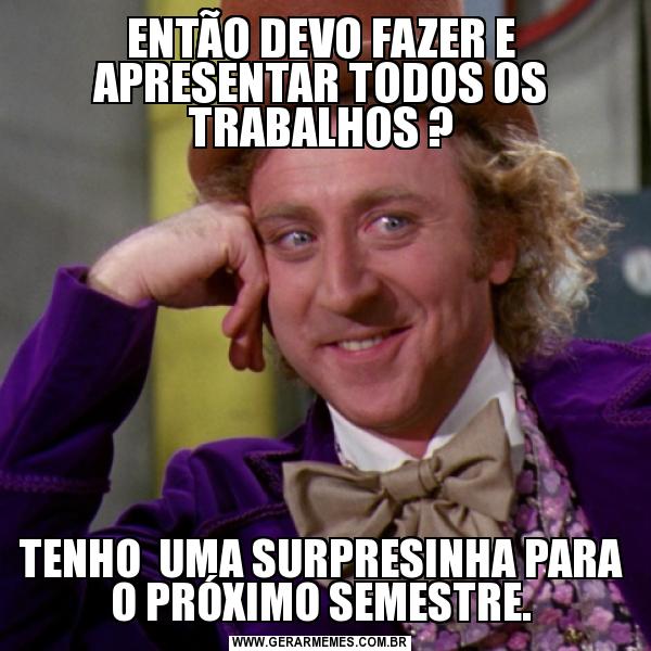 ENTÃO DEVO FAZER E APRESENTAR TODOS OS TRABALHOS ? TENHO UMA SURPRESINHA PARA O PRÓXIMO SEMESTRE.