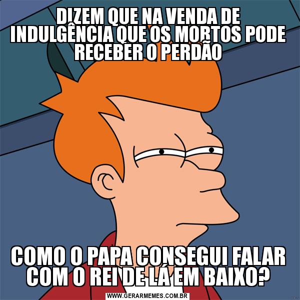 DIZEM QUE NA VENDA DE INDULGÊNCIA QUE OS MORTOS PODE RECEBER O PERDÃO COMO O PAPA CONSEGUI FALAR COM O REI DE LÁ EM BAIXO?