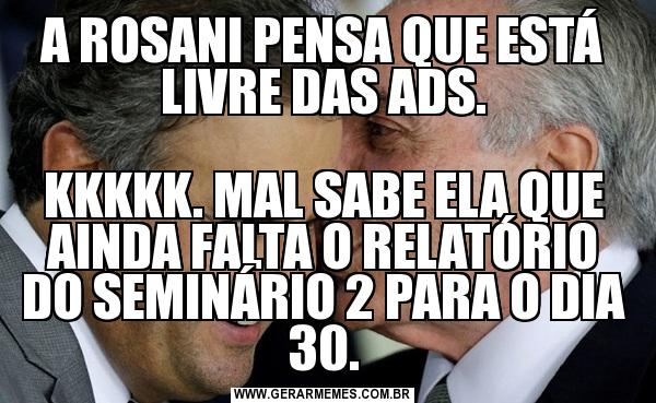 A ROSANI PENSA QUE ESTÁ LIVRE DAS ADS. KKKKK. MAL SABE ELA QUE AINDA FALTA O RELATÓRIO DO SEMINÁRIO 2 PARA O DIA 30.