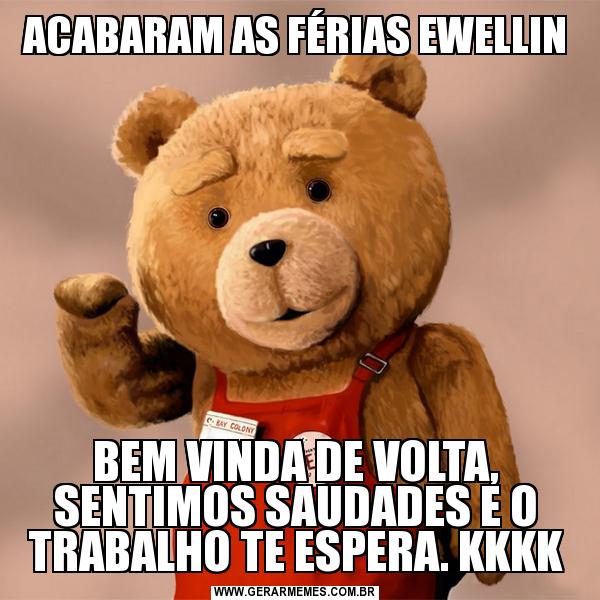 ACABARAM AS FÉRIAS EWELLIN BEM VINDA DE VOLTA, SENTIMOS SAUDADES E O TRABALHO TE ESPERA. KKKK