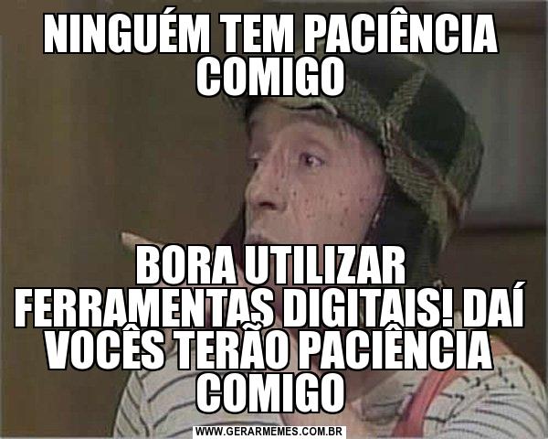 NINGUÉM TEM PACIÊNCIA COMIGO BORA UTILIZAR FERRAMENTAS DIGITAIS! DAÍ VOCÊS TERÃO PACIÊNCIA COMIGO