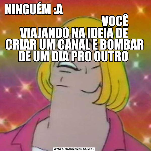 NINGUÉM :A VOCÊ VIAJANDO NA IDEIA DE CRIAR UM CANAL E BOMBAR DE UM DIA PRO OUTRO