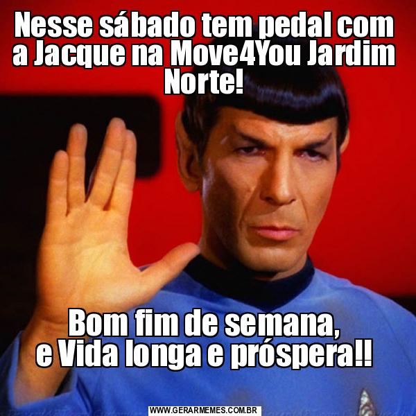 Nesse sábado tem pedal com a Jacque na Move4You Jardim Norte! Bom fim de semana, e Vida longa e próspera!!