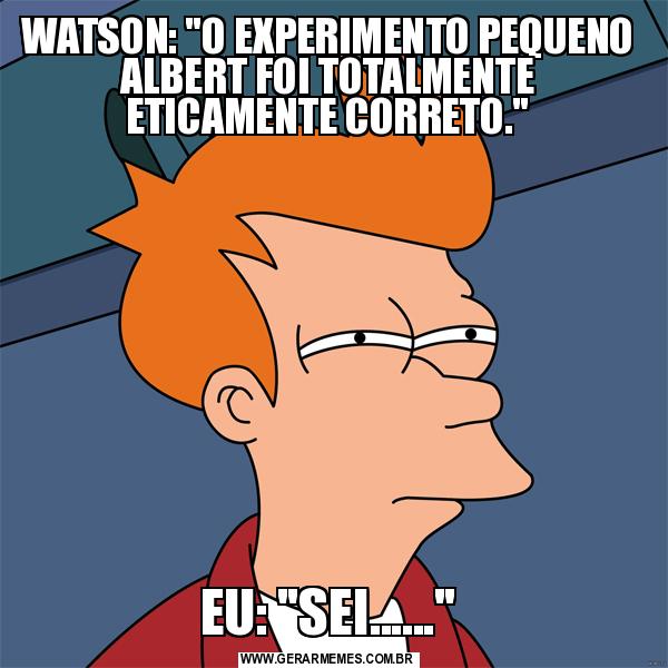 WATSON: "O EXPERIMENTO PEQUENO ALBERT FOI TOTALMENTE ETICAMENTE CORRETO." EU: "SEI......"