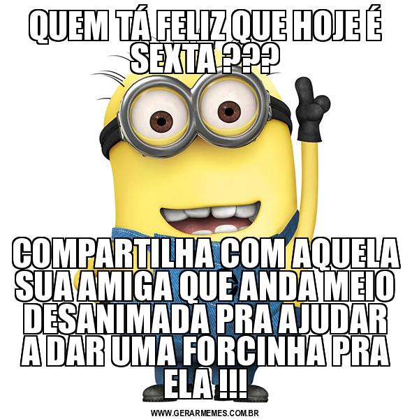 QUEM TÁ FELIZ QUE HOJE É SEXTA ??? COMPARTILHA COM AQUELA SUA AMIGA QUE ANDA MEIO DESANIMADA PRA AJUDAR A DAR UMA FORCINHA PRA ELA !!!