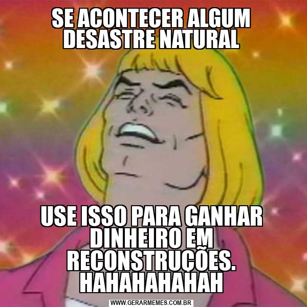 SE ACONTECER ALGUM DESASTRE NATURAL USE ISSO PARA GANHAR DINHEIRO EM RECONSTRUÇÕES. HAHAHAHAHAH