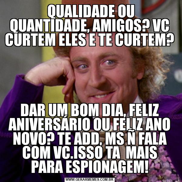 QUALIDADE OU QUANTIDADE, AMIGOS? VC CURTEM ELES E TE CURTEM? DAR UM BOM DIA, FELIZ ANIVERSÁRIO OU FELIZ ANO NOVO? TE ADD, MS Ñ FALA COM VC.ISSO TA MAIS PARA ESPIONAGEM!